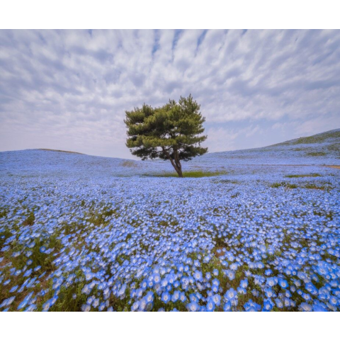 1 kép Fotótapéta Fa kék virágos mezőben, 350 x 200 cm