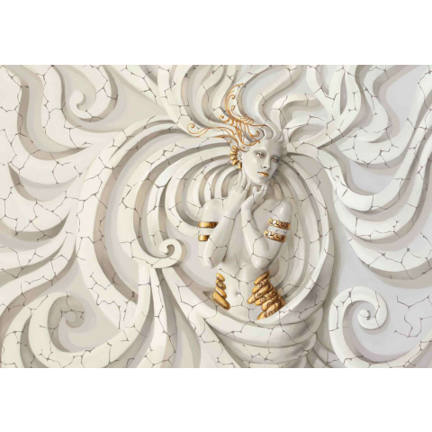 Luxus Fotótapéta: Istennő - 368 x 254 cm-es falikép 🖼️ Ezzel a lenyűgöző, 4 részből álló fotótapetával varázsolhatja otthonát egyedi és stílusos tereppé. A tapéta egy gyönyörű istennőt ábrázol, fehér és arany árnyalatokban, 3D-s hatással. A részletga...