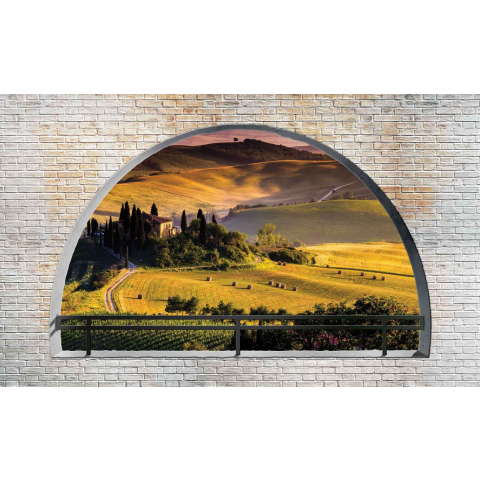 Fotótapéta falmatrica: Toszkán tájkép, íves ablak hatás 🖼️ Gyönyörű toszkán tájképpel díszített fotótapéta, mely íves ablak illúzióját kelti. Tökéletes választás, ha szeretnéd otthonodba varázsolni a mediterrán hangulatot. A falmatricát 4 darabból k...