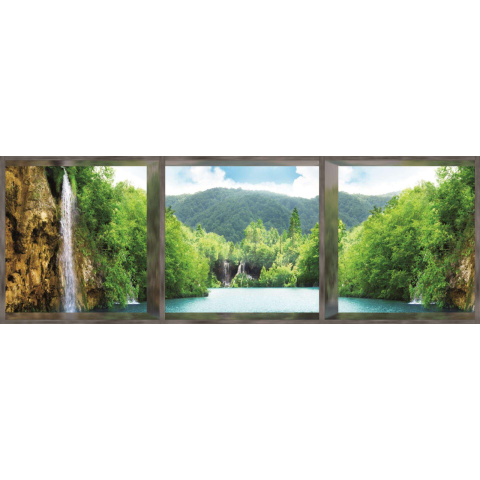Fotótapéta - Vízesés a Tónál - 4XL - Vlies - 8 részes falikép Gyönyörű, nagy méretű fotótapéta, mely egy festői vízesést és egy tóparti tájat ábrázol. A termék 8 darabból álló, könnyen felszerelhető vlies tapéta, mely ideális választás nappalik, háló...