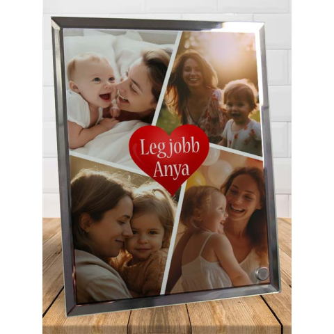 Fotóüveg kollázs fotókkal, legjobb anya. Fényképes meglepetés a legjobb Édesanyának. Különleges ajándék Édesanyád születésnapjára, anyák napjára vagy karácsonyra. Egy meglepetés amiről bármikor eszébe jutsz, ha ránéz. Fotóüveg, melyen egy 4 fotóból álló k