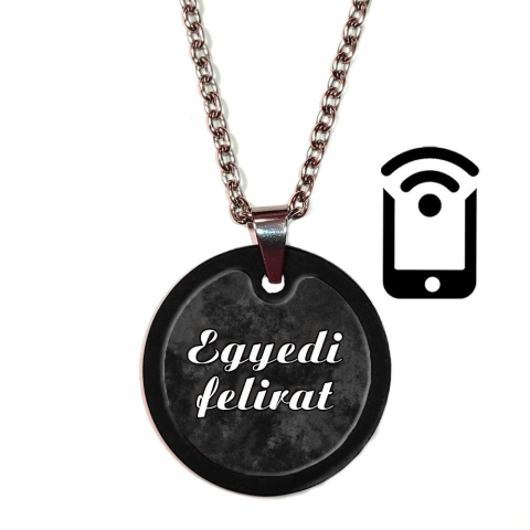 1 kép Fotóvetítő, videóvetítő nyaklánc nagy medállal, egyedi felirattal – fekete szín