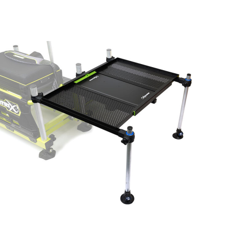 Fox Matrix praktikus tálca versenyládákhoz. Extra nagy kihúzható tálca, melyen akár 12×1,87l-es csalis doboz is elfér. Minimum méret – sz50cm x h53cm Teljesen kihúzott méret – sz50cm x h81cm Könnyű, alumínium kialakítás 2x teleszkópos 25mm-es támasztó lá