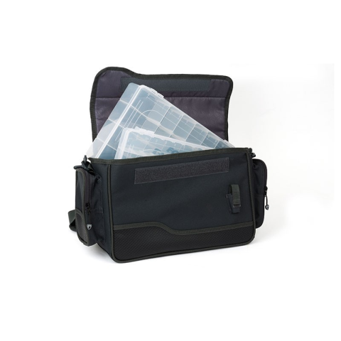 Prémium horgásztáska a Fox pergető vonaláról az igényesebb horgászoknak. A nagy rekeszben a nagy válltáska két nagy dobozban van elhelyezve, amelyek nagyobb és kisebb csalik tárolására nyújtanak lehetőséget - könnyen hozzáférhető, válltáska kialakít