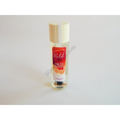 Fractal ehető ragasztó otthoni és professzionália használatra Ezzel az ehető ragaszóval a figurákat, szalagokat, virágokat, gyöngyöket és más díszítő elemeket stabilan rögzítheted a tortához. Az ehető ragasztó színtelen, szagtalan, ízetlen , így nem változtatja meg a torta ízét , sem kinézetét. A ragasztó kupakjába rögzített ecsetfej megkönnyíti a használatot . Minőségét megőrzi: 1 év