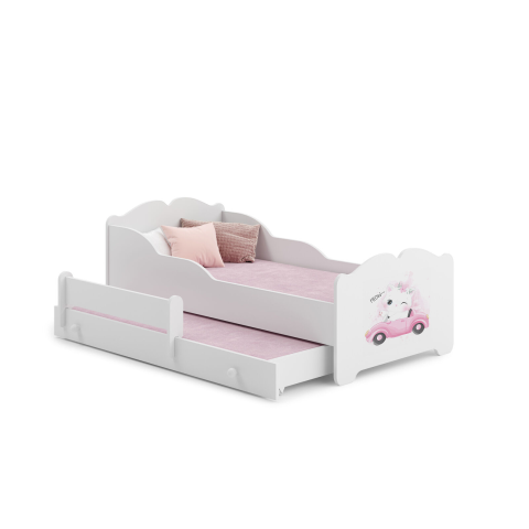 Anna Kihúzható Franciaágy Lányoknak - 160x80 cm, Cica Mintával 👧 Az Anna ágy tökéletes választás, ha egy funkcionális, biztonságos és esztétikus ágyat keresel a kislányod szobájába. A kihúzható vendégággyal és a bájos cica mintával ez az ágy ideális...