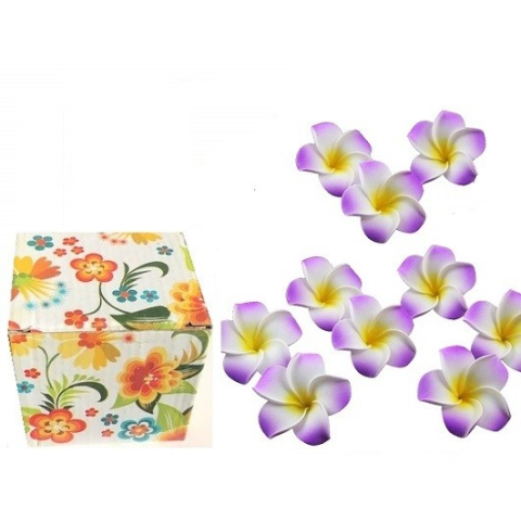 1 kép FRANGIPÁNI, Hawaii rózsa, egzotikus virág dekoráció díszdobozban LILA - 10 darab