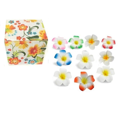 1 kép FRANGIPÁNI, Hawaii rózsa, egzotikus virág dekoráció díszdobozban VEGYES SZÍNBEN - 10 darab