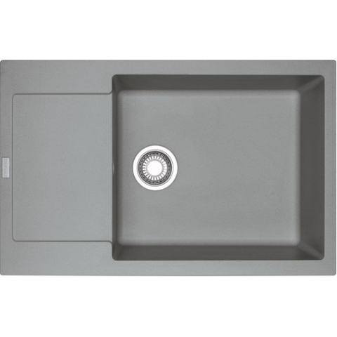 Franke MRG 611-78 BB gránit mosogató lecsepegtetővel, szürke kő kivitelben, mérete 78 x 50 cm. A mosogató felső szerelésre alkalmas, legalább 60 cm széles szekrénybe. A mosogatóhoz tartozik a teljes szerelési kiegészítő készlet (leeresztő, szifon, rögzítők stb.). Nincs szükség további kiegészítők vásárlására.
