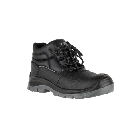 Vízlepergető korrigált bőr felsőrész magasított PU orrborítás. olajálló, kétrétegű, antisztatikus PU talp, emelt színtű SR csúszásbiztossággal Kompozit műanyag lábujjvédő, textil talplemez Szivacsos bokarész és nyelv, páraáteresztő, lélegző, ne