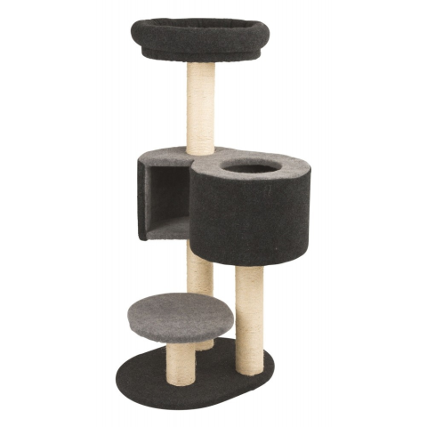 • nemezből készült • magasság: 106 cm • alap mérete: 52 x 38 x 2 cm • ágy felülete: 34 x 30 cm • odú: 53 x 34 x 25 cm • ágy: átmérő 40 cm • oszlop: o 8.5 cm • sisalal borított kaparófa Tulajdonságok Szín szürke
