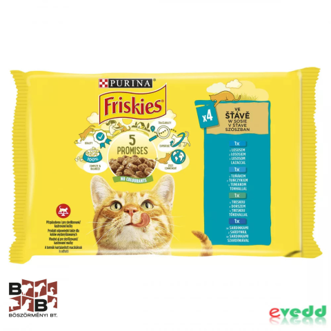 1 kép Friskies Macskaeledel 4x85g Lazac + Tonhal + Szardínia + Tőkehal Alutasak