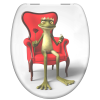 FROG KING duroplaszt WC-ülőke. Ötletes formaterv egészen a legutolsó részletig.. Az az elképzelés, amely szerint a fürdőszoba kizárólag a napi higiéniát szolgálja, már rég a múlté.. Az olyan alapértékek, mint a sokszínűség és a termékek minősége, valamint az egyediség új távlatokat nyitnak.. . A termék jellemzői. . Egyedi: tetszetős FROG KING nyomott minta. Kényelem és funkcionalitás: Kiváló minőségű WC-ülőke leeresztő automatikával (a fedél és az