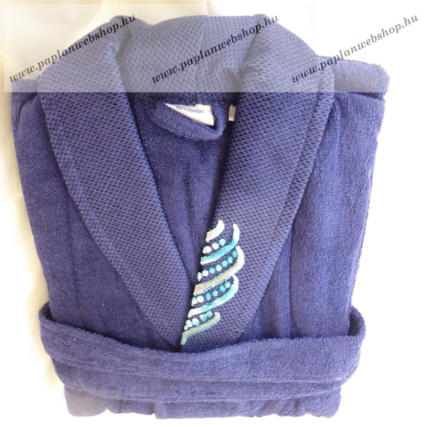 1 kép Frottír sálgalléros köntös, Kék Elegant Díszítéssel (100 % pamut), L