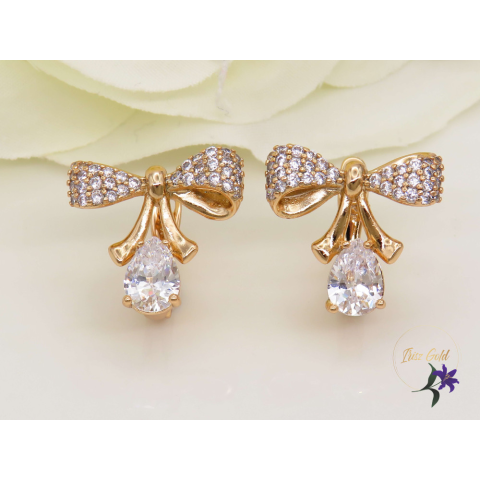 Gyönyörű masni fülbevaló fehér csüngős cirkóna kővelSzin: 18 Kr Méret:15x14 mm Zár: francia kapocs