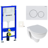 Függő WC szett - a készlet a következőket tartalmazza: WC öblítőkör nélkül, Duofix modul világos falakhoz / válaszfalhoz, Geberit WC-tartály, Delta vezérlőgomb, WC-ülőke. A WC-ülőke duroplastból készült. A vezérlőgomb műanyagból készült, fehér fényes színben.
