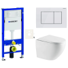 Falra szerelhető WC-készlet - a készlet a következőket tartalmazza: WC öblítőkör nélkül, Duofix modul világos falakhoz / válaszfalhoz, Geberit WC-tartály, Delta vezérlőgomb, WC-ülőke. A WC-ülőke duroplastból készült. A vezérlőgomb műanyagból készült és fehér színű.