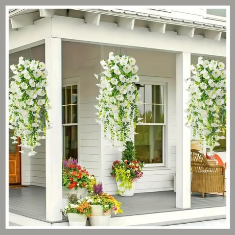 Függő Művirág Dekoráció – Dús Fehér Virágözön Kültéri és Beltéri Használatra GD1821943