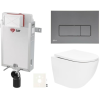 Függő WC-készlet - a készlet a következőket tartalmazza: falra szerelhető vortex öblítőmodul, WC-tartály SAT vezérlőgomb SAT és WC-ülőke. A WC-ülőke duroplast anyagból készült. A vezérlőgomb műanyagból készült, és pisztolyfém matt színű.