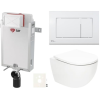 Függő WC-készlet - a készlet a következőket tartalmazza: falra szerelhető vortex öblítőmodul, SAT tartály, SAT vezérlőgomb és WC-ülőke. A WC-ülőke duroplastból készült. A vezérlőgomb műanyagból készült és fehér színű.