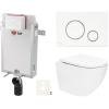 Függő WC-készlet - a készlet a következőket tartalmazza: falra szerelhető vortex öblítőmodul, WC-tartály SAT vezérlőgomb SAT és WC-ülőke. A WC-ülőke duroplast anyagból készült. A vezérlőgomb műanyagból készült és fehér színű.