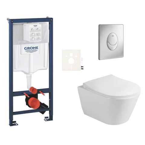 Falra szerelhető WC-készlet - a készlet a következőket tartalmazza: könnyű fali modul / fal előtti rögzítés, GROHE WC-kagyló, Skate Air vezérlőgomb és WC-ülőke.