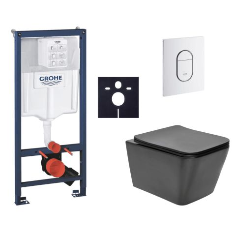 Falra szerelhető WC-készlet - a készlet a következőket tartalmazza: könnyű fali modul / előfalas rögzítés, GROHE WC-tartály, Arena Cosmopolitan vezérlőgomb és WC-ülőke.