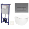Függő WC-készlet - a készlet a következőket tartalmazza: vortex öblítő, fényfal / válaszfal modul, WC-tartály SAT vezérlőgomb SAT és WC-ülőke. A WC-ülőke duroplastból készült. A vezérlőgomb műanyagból készült, pisztolyfém matt színben.