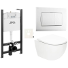 Függő WC-szett - a készlet a következőket tartalmazza: vortex öblítő, könnyű fali modul / válaszfal, JIKA WC-tartály és WC-ülőke. A WC-ülőke duroplastból készült. A vezérlőgomb műanyagból készült és fehér színű.