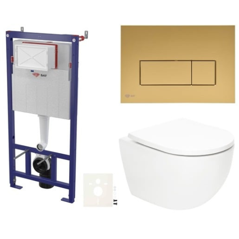 Függő WC-készlet - a készlet a következőket tartalmazza: vortex öblítő, világító falmodul / válaszfal, WC-tartály SAT vezérlőgomb SAT és WC-ülőke. A WC-ülőke duroplastból készült. A vezérlőgomb műanyagból készült, arany matt színben.