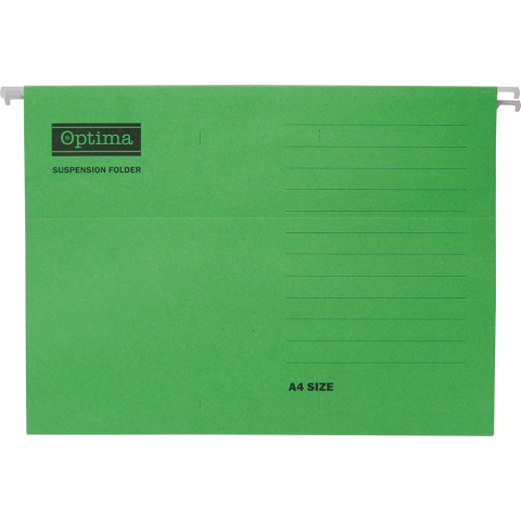 Függőmappa OPTIMA A/4 karton zöld 25 darabos Kiváló minőségű karton standard oldalzárt függőmappa, nagy kapacitású. 210 gr-os papírból. 25db/csomag