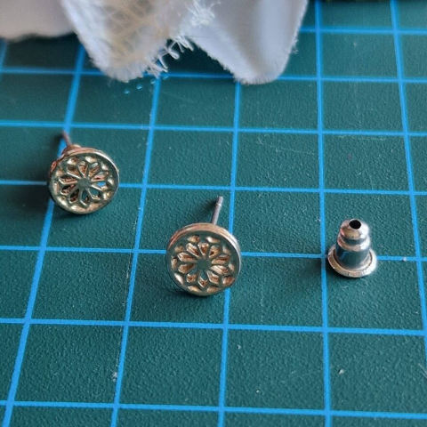 1 kép FÜL142 - Arany színű mintás kör beszúrós fülbevaló fém rögzítővel