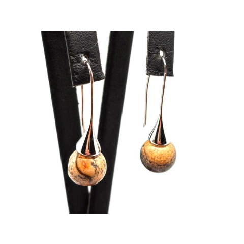 Fülbevaló golyó kürt lógós jáspis kép 10mm fülbevaló 1 kép