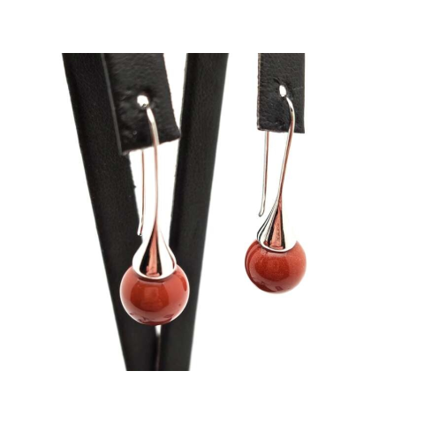 Fülbevaló golyó vörös goldstone kürt lógós 10mm fülbevaló 1 kép