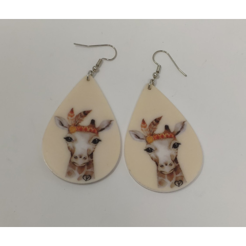 Vidám, indián fejdíszes zsiráfot ábrázoló csepp alakú fülbevaló, amely garantáltan mosolyt csal az arcokra. Könnyű, kényelmes viselet egész napra. Tökéletes bohém stílushoz és állatbarátoknak! Ez a különleges, indián stílusban megrajzolt zsiráf mintáva