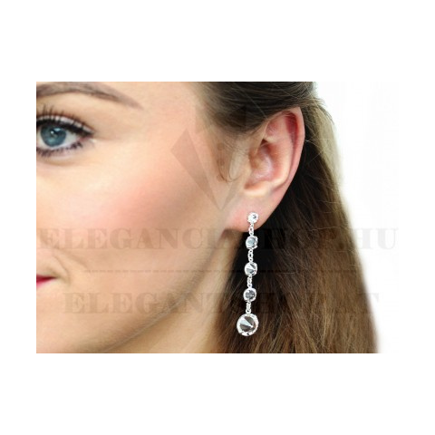 Hosszú, csü,ngő fü,lbevaló, ,AB efektusos csiszolt kö,vekkel. Lakodalmakra é,s mindennapi viseletre alkalmas. ,A csiszolt kö,vek fé,m há,zba vannak elhelyezve. A fé,m ré,szé,nezü,st galvanizá,ció,s felü,leti kidolgozá,s talá,lható,.Fé,m fé,kje van.Ez a termé,k nem tartalmaz nehé,zfé,meket Szé,lessé,ge: ,10 mm Hossz: ,56 mm Betűzős F&uu