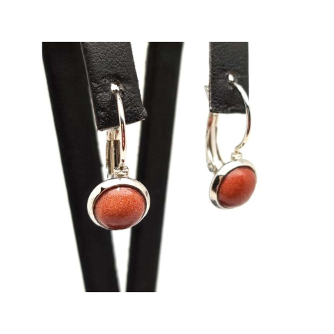 Fülbevaló lencse vörös goldstone záras fém kerettel 8mm fülbevaló 1 kép