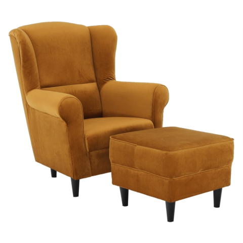 Füles fotel puffal, szövet mustár, ASTRID bútor termékleírás