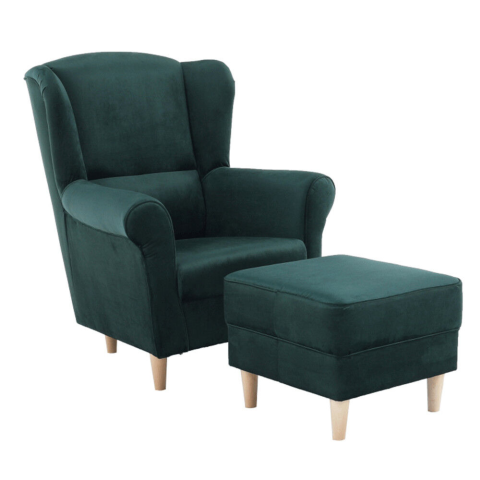 ASTRID Smaragd Szövet Füles Fotel Puffal - A tökéletes pihenőhely 🛋️ Élvezze a kényelmet és a stílust az ASTRID füles fotellel, melyhez egy praktikus puff is tartozik. A smaragd szövet elegáns megjelenést kölcsönöz otthonának, míg a kényelmes kialakít...