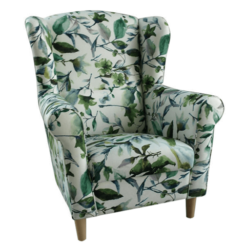 Füles fotel, szövet minta zöld levél, CHARLOT bútor termékleírás