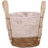 Ez a szőtt tengeri fűből készült ültető- és tárolókosár négy különböző méretben kapható, és a kontrasztos színnek köszönhetően vizuálisan kiemeli. A felhasznált hínár fenntartható termesztésből származik. A kosár alkalmas növényi kosárként kedvenc növényei számára, vagy egyszerűen dekoratív tárolóként takarók, törölközők, játékok, sálak és egyebek számára. A természetes anyagok a természetes tónusokkal kombinálva modern megjelenést kö