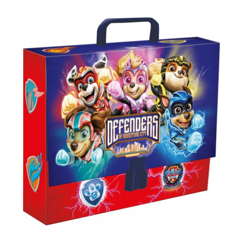 Masszív, XL méretű füles mappa A4-es iratok, rajzok vagy kreatív eszközök szállításához. Műanyag füllel és zárral, Mancs Őrjárat mintával.Méretek: 33 × 24,8 × 9 cm
