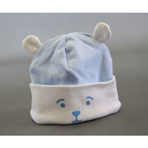Kényeztesd kisfiadat ezzel a bájos, cumi maci mintás füles pamut sapkával! A világoskék színű, Magyarországon gyártott sapka 97% pamut és 3% elasztán anyagból készült, így az első osztályú minőség garantált. A puha, kényelmes és rugalmas anyaga miatt a sa
