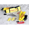 Hordozható 3 elembol álló oszloppal kialakított mobil muanyag röplabdaállvány, két hálómagasság állítással , a háló ponyva szegéssel kialakított, 8,5 m hálóval hordtáskában