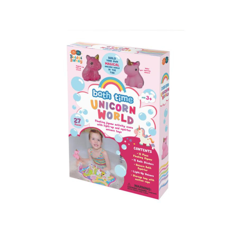 Ez a fürdőjáték garantált szórakozást kínál a kicsiknek a kádban a különféle mesés habmatricákkal. Áztatás után a csempére is ragasztható vagy a víz felszínén lebegnek. A készlet tartalmaz egy kirakós habszivacs matracot, habmatricákat unikornisos és hercegnős motívumokkal és két darab gumi unikornist, amiket megnyomva vizet permeteznek. A termékhez tapadókorongos tárolózsák is tartozik, hogy könyebb legyen a szárítás és a tárolás.