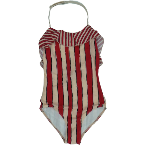Gyerek fürdőruha - Barack és piros fodrokkal (116-os méret) 🍑🍓 Ez a vidám, 116-os méretű fürdőruha tökéletes választás a nyári kalandokhoz! Barack és piros fodrokkal díszített, így igazán egyedi és stílusos. Kényelmes viseletet biztosít a strandon...