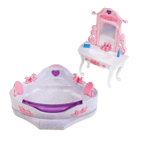 Fürdőszoba berendezés Barbie méretű babákhoz. Sarokkád mérete 30*25*9cm Kézmosó 27*19*9cm
