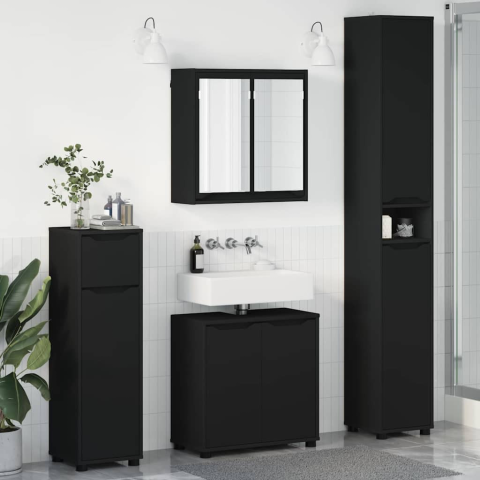Fürdőszoba bútor szett fiókkal polcokkal 4 pcs Fekete Faanyag