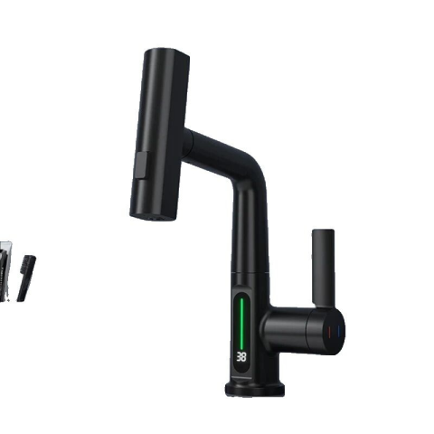 Fekete kihúzható mosdó csaptelep digitális kijelzővel - Modern elegancia a fürdőszobádba 🖤 Ez a modern, fekete mosdó csaptelep nem csupán egy praktikus eszköz, hanem a fürdőszobád stílusos kiegészítője is. A kihúzható funkció és a digitális kijelző ö...