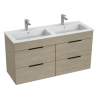 Függesztett fürdőszobai szekrény kerámia mosdóval kőris dekorral, mérete 120x43x62,2 cm. Laminált felület. Egy csavarral.